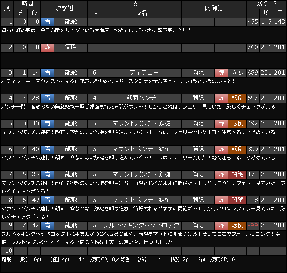 龍飛「(勝ち誇った笑みを控え室に繋がるモニターに向け、そして、そそくさと逃げるように退場)」