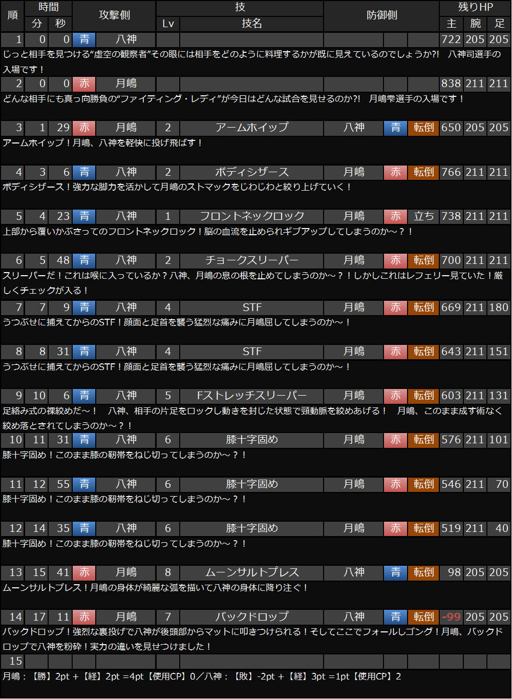 雫「恐ろしいことをいうわね・・・・・・本当に厄介ね、その関節技は・・・」(立ち上がらせて腕を掲げ、歓声を浴びる)